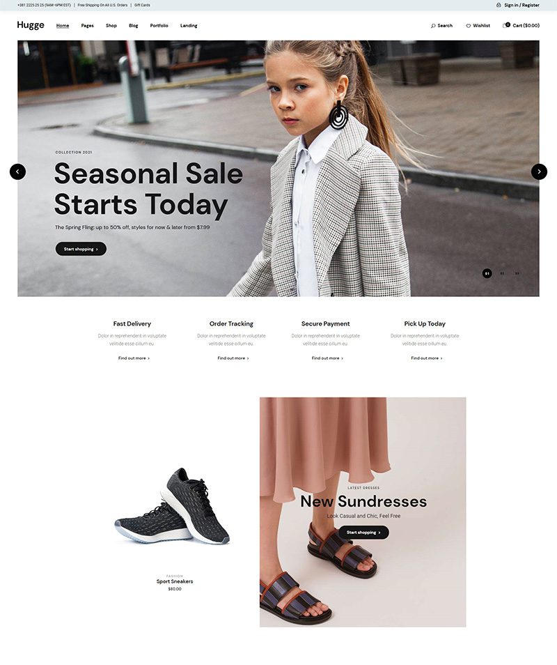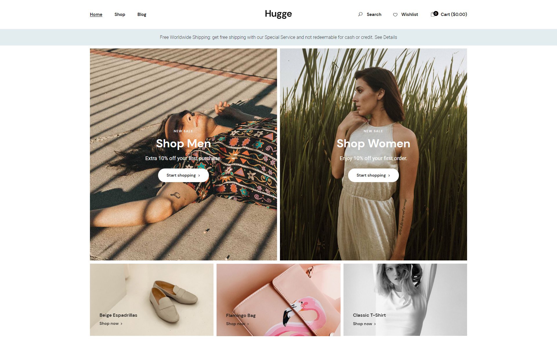 Hugge comes with pages for presenting your brand, sharing gift card info, and so much more.